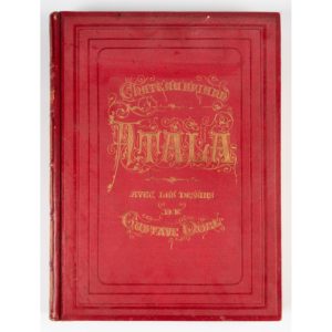 CHATEAUBRIAND. Atala. Paris, L. Hachette et Cie, 1863. In-folio, demi-chagrin rouge, plats de percaline rouge avec titre doré, dos orné, tranches dorées (Rel. éditeur). 30 grandes compositions de Gustave Doré, avec serpentes...