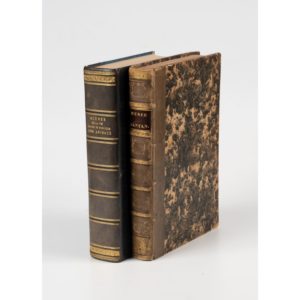 l'époque). Édition originale et premier tirage de cet album de 100 portraits en noir, dessinés et gravés sur bois par Maurisset, d'après les sculptures de Jean-Pierre Dantan. On a relié au début du volume 3 dessins originaux non signés : un portrait au crayon ; un portrait aquarellé de Lépaulle attribué à Dantan ; et un petit portrait charge, à la plume, de M. Moussette. Reliure frottée. Rousseurs. On joint : GRANDVILLE. Scènes de la vie privée et publique des animaux. Paris, J. Hetzel et Paulin, 1842. In-8, demi-veau bleu nuit, dos lisse orné (Rel. moderne). Tome I seul. Dos passé. Quelques rousseurs pâles. Marge latérale courte.