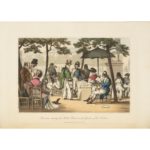 orné, tranches dorées (Rel. anglaise de l'époque). Tooley, 444. Nouvelle édition en 17 planches de ce bel album, imprimé sur papier fort, illustré de scènes en couleurs de vie quotidienne dans les rues ou des intérieurs de Paris : chacune de ces 17 aquatintes est accompagnée de 2 ou 3 pages de texte explicatif, et suivie d'un feuillet blanc servant de serpente. Les planches sont datées 1822, sauf 4 datées 1824. La première édition (1824) comptait 21 planches. Frottements à la reliure. Rousseurs et mouillures sur le titre, quelques taches et rousseurs.