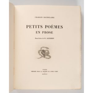 BAUDELAIRE (Charles). Petits poèmes en prose. Paris, Société du livre d'art, 1934. In-4, broché, chemise et étui de l'éditeur. Un des plus beaux livres illustrés par Alexandre Alexeïeff : 32 eaux-fortes originales dont 30...