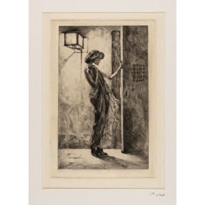 Claude DALBANNE (1877 - 1964) La Visiteuse (ou la Mort) Eau-forte sur Japon Etching on Japanese paper SUJET : 23,5 X 16 CM ; FEUILLET : 32,6 X 25 CM / 9.2 x 6.3 ; 12.8 x 9.8 IN