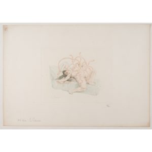 Félicien ROPS (1833 - 1898) D'APRÈS La Pieuvre Gravure en couleurs par A. Bertrand, G. Pellet éditeur 1900 Numérotée 37/ 100 en bas à droite Bords un peu jaunis Colour engraving by A. Bertrand, published by G. Pellet, 1900, numbered...