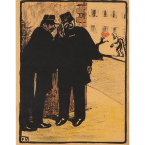 Félix VALLOTON (1865-1925) "Bougeons pas… c'est la femme du commissaire" Lithographie en couleurs sur vélin crème monogramme en bas à gauche Légèrement jaunie Colour lithograph on cream vellum monogram in the lower left...