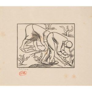 ? Aristide MAILLOL (1861 - 1944) La taille de la vigne Gravure sur bois pour illustrer les Géorgiques de Virgile Monogramme en rouge en bas à gauche, numérotée 85/ 100 Cadre 9,2 X 11,4 CM Wood engraving illustrating Virgil's Georgics, red...