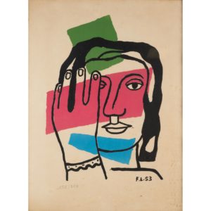 Fernand LEGER (1881 - 1955) Tête de femme, 1953 Lithographie en couleurs sur vélin Mourlot imprimeur Numérotée 125/ 250 Encadrée Colour lithograph on vellum, mourlot printer, numbered 125/250, framed SUJET : 50 x 35 CM / 19.6 x 13.7 IN...