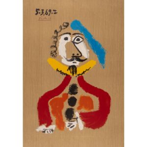Pablo PICASSO (1881 - 1973) D'APRÈS Mousquetaire de la série des "Portraits imaginaires " Lithographie en couleurs par Salinas sur papier brun imitant le carton Signature et date "5.3.69-I" dans la planche, sans numérotation Quelques...
