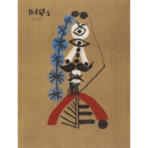 Pablo PICASSO (1881 - 1973) D'APRÈS Mousquetaire de la série des "Portraits imaginaires " Lithographie en couleurs par Salinas sur papier brun imitant le carton Signature et date "14.3.69-I" dans la planche, sans numérotation Quelques...