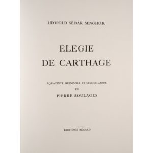 Pierre SOULAGES (1919 - 2022) Eau-forte N° XXXIV Planche issue du fascicule " Elégies de Cartage " de la série " Les Elégies majeures " de Léopold Sédar. Senghor. A. Lambilliotte, Paris imprimeur. Editions du Regard, Genève...