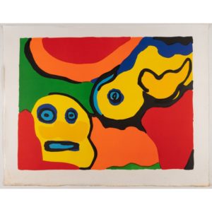 Karel APPEL (1921-2006) Deux têtes Lithographie en couleurs sur vélin, Maeght 1974 Rousseurs éparses Colour lithograph on vellum, Maeght 1974 , scattered foxing SUJET : 50,5 x 66,5 CM ; FEUILLET : 61 x 78 CM / 19.8 x 26.1 ; 24 x 30.7 IN