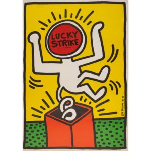 Keith HARING (1958 - 1990), D'APRÈS Lucky Strike. Affiche Sérigraphie Pliures et cassures Screen printing, folds and breaks 77 X 99,5 CM / 30.3 x 39.2 IN