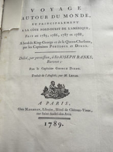 Georges DIXON. Voyage autour du Monde et principalement sur les côtes Nord-Ouest de l'Amérique. Paris, 1789. Edition originale, demi-veau, dos orné, pièce de titre en maroquin rouge, in-4, 21 planches, 23 tableaux.