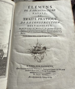 DUHAMEL DU MONCEAU. Éléments de l'architecture navale ou traité pratique de la construction des vaisseaux. Paris 1758, in-4, dos à nerfs ornés, pièce de titre, gravure frontispice, 24 planches dépliantes. 10 vignettes par Ozanne, édition plus...