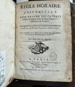 Sieur HAYE. Règle Horavie Universelle pour brocer des cadrans. Paris, 1756. Plein-veau in-4.