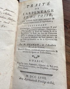 M. OZANAM. Traité de l'arpentage. Paris, 1758, in-8, dos à nerfs orné.