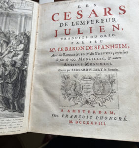 Baron de SPANHEIM. Les césars de l'empereur Julien, gravure de Picart. Amsterdam, 1728, in-4, plein-veau, dos à nerfs aux petits fers, pièce de titres en maroquin vert.