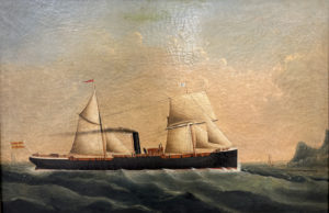 Ecole ITALIENNE Le Cataluna navire mixte, faisant route vers une côte Huile sur toile 58 x 88 cm