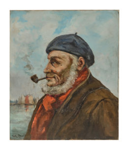 École ANGLAISE, début XXe siècle Portrait de vieux marin pêcheur Huile sur toile signée en bas à gauche 55 x 48 cm