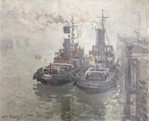 Jean RIGAUD Bateaux à quai Huile sur toile signée en bas à gauche 50 x 61 cm