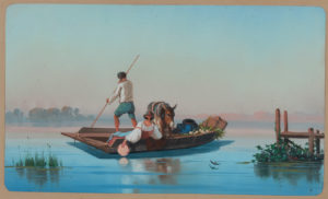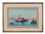 École ITALIENNE, XIXe siècle Barque sur une étendue d'eau avec personnages Fine gouache sur papier 25 x 41 cm