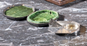 Michael BUTTERFIED (1635-1724) Petit cadran solaire de poche en argent. Style axe à l'oiseau repliable pour le réglage des latitudes. Gravé au dos de nombreuses villes françaises et européennes. Étui en chagrin noir doublé de velours vert....