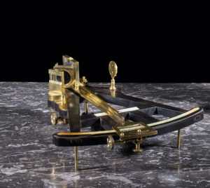 Octant à pinule en bois noir et laiton. Limbe et vernier divisés sur os. France, début XIXe siècle Rayon utile : 28 cm