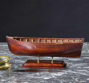 Petit modèle d'embarcation Coque bordée sur membrures. Socle de présentation en acajou. France, fin XIXe siècle L. 18 cm