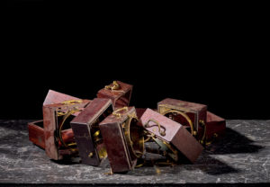 Ensemble de dix éléments de chronomètre de marine Français avec leur cardan
