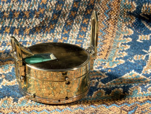 Boussole de géodésie à pinules en laiton poli doublé d'un clinomètre releveur de pentes, signé WATKINS. Angleterre, début XXe siécle