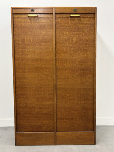 Casier double « marinisé » à rideaux en bois de placage, garni laiton. H. 144 cm L. 80 cm P. 35 cm Vendu sur désignation