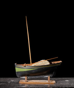 Thonier en bois peint voiles grées, pont détaillé. Circa 1940 L. 80 cm