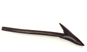 Massue, dite bec d'oiseau en bois, (fentes). Kanak, Nouvelle Calédonie. L. 78 cm