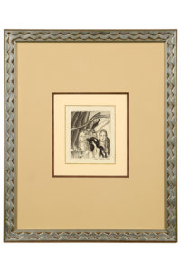 DUPAS Jean (1882- 1964) Couple de femmes à la corbeille de fruits Dessin au fusain et encre de Chine signé en bas à droite et daté 1928 15 x 13 cm ( à vue sous encadrement)