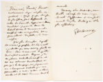 d'appuyer à la Commission des beaux-arts de l'Hôtel de ville, la demande faite par PRÉAULT de la statue de St Louis qui sera une des trois qui vont être données pour l'église St Paul et St Louis au Marais [...] J'espère que MÉRIMÉE, FOUCHÉ, DURET notamment et qui est plus important à cause de ses idées sur la sculpture, fort différentes de celles de Préault, appuieront mon candidat ; je prends donc la liberté de vous le recommander aussi »... Il regrette sincèrement que sa maladie l'ait empêché de répondre à ses invitations : « Depuis j'ai eu plusieurs rechutes successives et je ne me retrouve véritablement un peu qu'à la campagne, où j'éprouve un changement notable qui me permettra à mon retour à Paris d'aller et venir comme tout le monde »... PROVENANCE ancienne collection Louis de LAUNAY (vente Artcurial, 24 novembre 2008, n° 131).