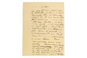 DUFY Raoul (1877-1953) L.A.S. « Raoul Dufy », [1930], à Paul POIRET ; 1 page in-4 avec ratures et corrections. Préface en forme de lettre pour une exposition des peintures de Paul Poiret. « Vous avez été mon parrain dans la décoration et dans...