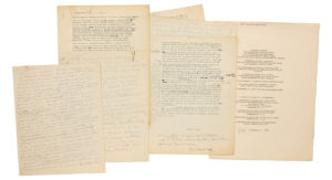 soleil éblouissant, du bleu jusqu'au raz du sol. On baigne dans le bleu ». Puis c'est le désert, « un paysage roux couleur de lion » ; puis les champs de pétrole, « une famille de petites Tour Eiffel » avec une « odeur de garage » ; et enfin Hollywood... « Ce sentiment d'improvisation rapide de maisons déposées seulement sur le sol, pas dans le sol, aucune liaison avec l'arbre la pierre la terre, c'est vraiment tellement au rebours des édifices européens qu'on doit sentir un “départ”, un essai de nouvelle civilisation. C'est cela qui est si intéressant en Amérique, ce sont les dispositifs contraires - radicalement contraires - c'est trop facile de critiquer superficiellement. Il faut attendre. Tout est voulu, mobile. Je vois dans l'avenir l'avion-habitation. Ils vont vers cela et c'est parfaitement logique. L'avion ne se posant pas au sol même pouvant faire un temps d'arrêt devant un beau nuage, ou dedans. Peut-être y a-t-il à 2000 mètres en l'air dans un coin de la stratosphère un endroit idéal où le sentiment de solitude sera absorbé ». On joint le tapuscrit de ce texte, avec des corrections autographes et une importante addition marginale (2 p. in-4), et cette note autographe en fin, signée FL : « Voici “en vitesse” un papier sur la Californie. C'est vu en auto à travers la vitre à 800 à l'heure arrangez pour le mieux » ; plus un double ; et un feuillet de justificatif des Illuminations, signé.