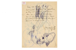 RICHTER Hans (1888-1976) L.A. (brouillon) avec DESSINS, [vers 1910, à Elizabeth STEINER] ; 2 pages in-4 (27,5 x 20,7 cm) ; en allemand. Brouillon de lettre d'amour à sa première femme : il est triste et déprimé ; ce n'est pas parce qu'il n'y pas...