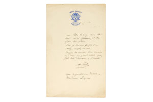 RODIN Auguste (1840-1917) L.A.S. « A. Rodin », Grenoble [1894], à son ami Alphonse LEGROS ; 1 page in-8 à en-tête de l'Hôtel Monnet Grenoble. « Une lettre de vous, mon cher ami m'est précieuse et me fait tant plaisir. Oui je donnerai ce que...