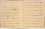Willemetz d'après le roman de Pierre Louÿs, fut créée le 12 décembre 1930 aux Bouffes-Parisiens. Le manuscrit, pour chant et piano, du n° 21 Final, est en deux parties et comprend : - (1) Ensemble des Revendications par les Femmes : « Majesté nous vous supplions d'écouter nos revendications » ; interviennent successivement une étudiante, une jeune fille sage et deux girls, auxquelles répondent Pausole, le page Giglio, et le grand eunuque Taxis ; puis Diane réclame : « Je vous demande au nom de vos Reines »... ; échanges entre Pausole, Giglio, Taxis, le Métayer puis le Brigadier ; la scène s'enchaîne avec - [2] Hymne chanté par Diane (Diane à la houppe) : « A ton voisin il ne faut jamais nuire »..., et « repris par tous ». Le manuscrit, à l'encre noire sur papier à 24 lignes, a servi pour la gravure de la partition publiée par Salabert ; il est daté en fin « 12 Novembre 1930 ». Il est précédé d'un feuillet de garde, avec cet envoi autographe : « au Docteur L. Devraigne avec le souvenir reconnaissant de son dévoué AHonegger Septembre 32 » [Louis DEVRAIGNE (1876-1946) était chef du service de Maternité à l'hôpital Lariboisière, et auteur de nombreux ouvrages d'obstétrique] ; au verso, envoi autographe d'Andrée Vaurabourg-Honegger (1894- 1980) au nom de leur fille Pascale, née le 11 août 1932 : « à mon premier Ami à mon second Papa au docteur L. Devraigne, avec toute la reconnaissance affectueuse de Pascale Honegger 11 Août 1932 et de sa Maman A. Vaurabourg Honegger ».