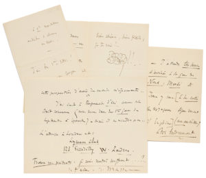 MASSENET Jules (1842-1912) 4 L.A.S. (paraphe), s.d., à sa femme Louise MASSENET « Ninon » ; 14 pages in-8. Lettres tendres : nouvelles lors de ses voyages ou séjours parisiens, répétitions, travail, etc.