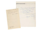Ses déclarations tonitruantes contre la peinture moderne auxquelles la presse a fait écho nous renseigneraient à elles seules sur son équilibre. C'est un très curieux cas qui appellerait une étude clinique. De mes yeux je l'ai vu recopier une de ses toiles (Les Muses inquiétantes) qui était déjà dans une collection pour vendre la copie comme original. En 1943, alors que j'étais à New York, j'ai appris qu'il contestait, sur les reproductions que j'en avais données [...] l'authenticité de deux toiles (La Muse du Poète et un Intérieur métaphysique) qui ne pouvaient être que de lui. Il a antidaté bon nombre de ses tableaux », et même authentifié des « faux caractérisés »... On joint une P.S., 14 décembre 1959 (demi-page in-4 à en-tête de la Galerie Daniel Cordier), reçu d'une toile de Chirico prêtée par B. Poissonnier (pour l'exposition Eros).