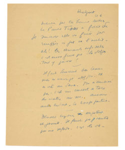 CÉLINE Louis-Ferdinand (1894-1961) L.A.S. « Louis F », Huelgoat ce 6 [octobre ? 1942, à son ami le peintre GEN-PAUL] ; 2 pages in-fol. Il fait allusion à Tinou, la femme de LE VIGAN : « à force de se suicider elle va finir par réussir un jour...