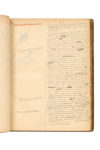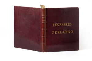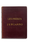 sup., dos à nerfs, roulette intérieure dorée (Pierson ; reliure légèrement fanée, qqs légères éraf lures, petites usures aux coupes). Manuscrit de travail complet de ce roman. Les Frères Zemganno conte l'histoire de deux frères acrobates, depuis leur enfance bohémienne jusqu'à leurs succès dans les cirques parisiens, puis la chute du plus jeune qui reste infirme ; ils finiront racleurs de violon. C'est la première oeuvre écrite par Edmond seul, sans la collaboration de son frère Jules mort en 1870 ; d'où l'aspect autobiographique de ce « portrait de l'artiste en saltimbanque » (J. Starobinski), publié chez Charpentier en 1879. Ce « manuscrit donné à l'impression » (comme le note en tête à l'encre rouge Edmond de Goncourt) est composé, - après 5 feuillets pour le fauxtitre, le titre, la dédicace « A Madame Alphonse Daudet », et la préface datée du 23 mars 1879 -, de 179 feuillets paginés au crayon rouge et écrits, au recto seul, à l'encre noire sur papier bulle, le texte sur une colonne occupant la moitié droite du feuillet réservant ainsi une marge pour les additions. Il présente de nombreuses biffures et corrections. Il compte 86 chapitres, numérotés en chiffres romains, de longueur inégale, certains portant un titre biffé : I Le campement des saltimbanques, LXV Le fond rouge de la porte battante, LXXI Les reproches que Gianni se fait dans le Bois de Boulogne, LXXXIV Plus de réponse aux questions de son frère... Noms des typographes au crayon bleu, et indications typographiques au crayon. Dans sa Préface, Goncourt dit avoir voulu écrire le « roman réaliste de l'élégance [...] pour définir dans de l'écriture artiste, ce qui est élevé, ce qui est joli, ce qui sent bon, et encore pour donner les aspects et les profils des êtres raffinés et des choses riches : mais cela, en une étude appliquée, rigoureuse, et non conventionnelle et non imaginative de la beauté, une étude pareille à celle que la nouvelle école vient de faire, en ces dernières années, de la laideur. [...] Quant aux Frères Zemganno, [...] c'est une tentative dans une réalité poétique. [...] et j'ai fait cette fois de l'imagination dans du rêve mêlé à du souvenir. » Et il rend hommage, dans une note, aux artistes du cirque qui l'ont inspiré : Victor Franconi, Léon Sari, et les frères Hanlon-Lees. PROVENANCE Edmond de GONCOURT (ex-libris ; vente Bibliothèque des Goncourt 5-10 avril 1897, n° 859). - Collection René GIMPEL (achat le 23 janvier 1919 chez Blaizot pour mille francs [Journal d'un collectionneur, Hermann, 2011, p. 131] ; vente Christie's Paris 6 novembre 2013 n°135).