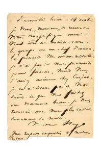 HUGO Victor (1802-1885) L.A.S. « Victor Hugo », Hauteville house 14 octobre [1872, à Émile ROBERT] ; 1 page in-8 (fente à un pli, petite découpure dans le papier en bas). « Je viens, Monsieur, de recevoir votre magnifique envoi. Vous êtes un...