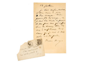 HUGO Victor (1802-1885) L.A.S. « Victor Hugo », [Paris] 22 juillet [1876], à Mme Zélie ROBERT à l'Hôtel des Beaux Arts ; 1 page in-8, enveloppe timbrée. À la mère d'un jeune Communard déporté. « Je suis confus, Madame, de vous donner la...
