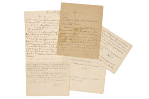HUYSMANS Joris-Karl (1848-1907) 5 L.A.S. « JKHuÿsmans », 1893-1896, à l'abbé FERRET ; 10 pages in-12, une adresse. Paris 20 septembre 1893. Il est « harcelé d'ennuis ; cela a pris de telles proportions que j'ai fini, comme un collégien, par...