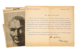 ont procurée ses livres, tout particulièrement le Kripperl [Wiener Kripperl von 1919, 1921] !... 2 coupures de presse jointes.