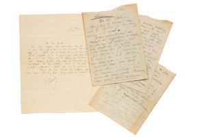 SARTRE Jean-Paul (1905-1980). L.A.S. « JPSartre », 10 mai [1951], à Louis JOUVET ; demi-page in-4. Au sujet de sa pièce Le Diable et le Bon Dieu. « Cau m'a rapporté votre conversation avec lui. Je tiens à vous dire que je suis en total...