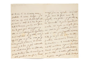 de Coppet, alors qu'elle allait récupérer l'argent laissé en dépôt par son père Necker au Trésor royal, et marier sa fille Albertine au duc de Broglie. Mme de Duras avait suivi son mari et Louis XVIII à Gand.] « Combien je voudrois être auprès de vous dear dutchess. Je jouirois bien plus à mon aise de votre société quoique j'aye près de vous bien des rivaux et des rivales mais enfin nous parlerions sur le passé et cela soulage on le croit encor présent. Ce que j'ai souffert ce que je souffre est au de là de ce que je savois de la peine. Ces derniers moments dans lesquels la bonté du roi et de M. de B[lacas] avoient arrangé mon bonheur m'ont rendu plus sensible à cette ancienne douleur qui m'est revenue dans les mêmes lieux, sous les mêmes formes. Je la vois là sur les mêmes murs - j'entends la même horloge. J'ai rêvé un an mais le réel c'est cela ». On l'a engagée à retourner à Paris : « On m'a assurée que ma liquidation seroit confirmée si j'y allois, mais je n'y crois pas ou je ne veux pas y croire. Quand je saurai, si ruinée comme je le suis je puis rassembler cent mille écus pour ma fille, alors je me déciderai sur le mariage et puis quand il sera fait, établi, arrangé j'irai vous rejoindre. Mais n'est-il pas inouï de faire encor des projets »... « Les nouvelles de France sont très militaires. Il paroit que toute l'armée est pleine d'enthousiasme pour son chef. La nation plus amie de la paix me paroit triste surtout dans le midi. De ce côté les étrangers sont moins détestés que dans le nord de la France. Ici on ne croit pas aux succès de Murat il paroit que les Italiens ne se réservent que pour Napoléon mais peut-il être partout ! Il y a des officiers à Grenoble même qui ont caché les lys dans leur shakos comme ils avoient caché les aigles tant l'idée du changement est dans les têtes françaises »... Elle ajoute : « Parlez de moi à Chactas [CHATEAUBRIAND]. Quelles soirées que celles que je passerois avec vous ! Je suis, ici, entourée de soldats suisses, et bien seule d'ailleurs »... PROVENANCE La Duchesse de Duras et ses amis, Chateaubriand (vente 24 octobre 2013, n° 216)