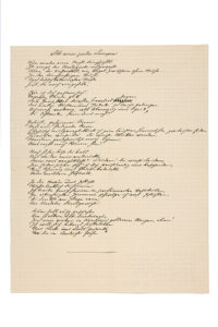 décembre 1911 par les éditions Axel Juncker de Berlin. Le poème compte six sizains. « Nun wieder eine Nacht durchjohlt,Ist rings der Stadtpark aufgewacht. Allee, der Wasserfall, ein Vogelzwitschern ohne Mühe... In der durchsichtigen Frühe,Nach falsch bekränzter Nacht,Hast du mich eingeholt »... Au verso, attestation d'authenticité par Kurt HILLER (Berlin 6 octobre 1916), confirmant que ce poème a bien été écrit de la main de Werfel lui-même....
