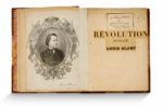 la Révolution..., parue entre 1847 et 1862 en 12 volumes. Le manuscrit présente des ratures et corrections. Chaque chapitre porte un titre et commence par un résumé : - L'Ambition de Mirabeau, - Effort contre la Terreur [la fin manque], -Les Douze renversés, - Les Girondins chassés du pouvoir, - Débats sur la guerre [sommaire seul], - La Patrie est en danger, - Procès et mort des Dantonistes [une note finale est incomplète de la fin], - La révolte de Lyon étouffée, - Le prétoire des Jacobins, - Sansculottisme des Girondins, - Philosophie, - La Glacière d'Avignon, - Trahison de Dumouriez, - L'Evangile devant la Révolution, - Les Girondins. Le volume se termine sur un manuscrit autogr. de 14 pages, intitulé La Liberté. On a relié en tête un portrait de Louis Blanc, et plus loin le fac-similé d'une lettre à Maurice La Châtre.